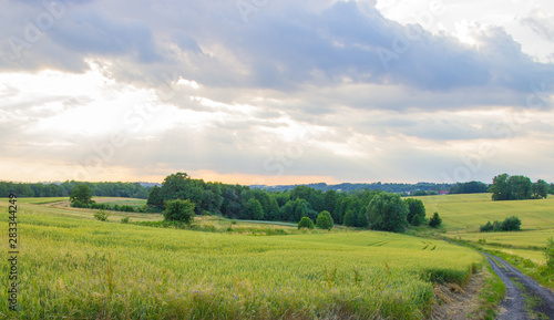 © morissfoto, Fototapeta premium Polish arable fields. Rural landscape. Ripening cereals.