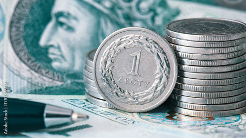 Obraz premium Polish money, coin stack. Business, finance