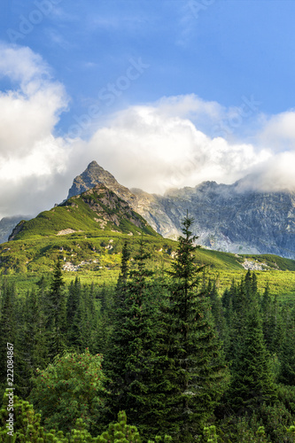 Obraz premium Polish Tatra mountains summer landscape with blue sky and white clouds. HDR...
