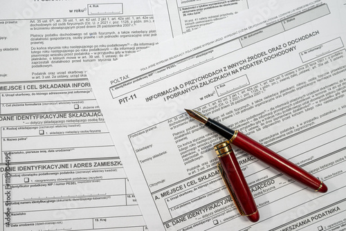 © RomanR, Fototapeta premium polish tax forms pit 11 with pen on office table. Accounting concept.
