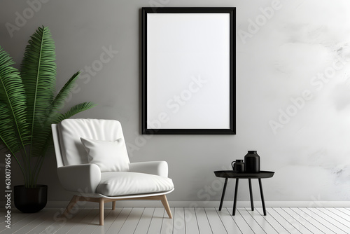Fototapeta premium Polished and Inviting Living Area Picture Frame Mockup, generative, ai