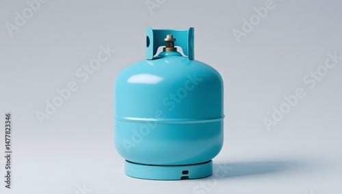 Obraz premium Polished Blue Gas Cylinder with Metal Valve, Isolated