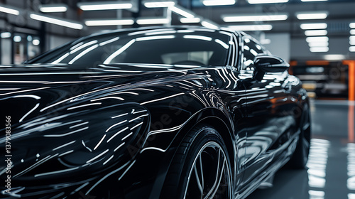 Obraz premium Polished gloss car, car paint protection advertisement, a fast black vehicle