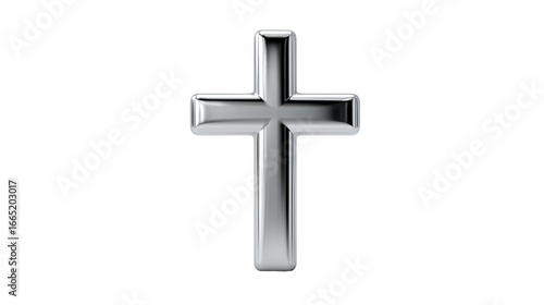 © Maestro, Obraz premium Polished Metal Christian Cross Against White Background