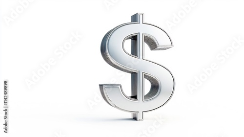 Fototapeta premium Polished Metallic Dollar Symbol Isolated in 3D on White Backdrop