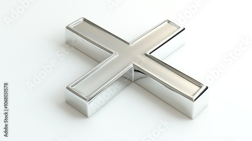 Obraz premium Polished silver cross, 3D rendered and top-viewed, isolated on a white background for a clean design.