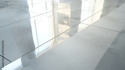 © CleanFrame, Obraz premium Polished tile floor reflecting light modern interior design Reflection