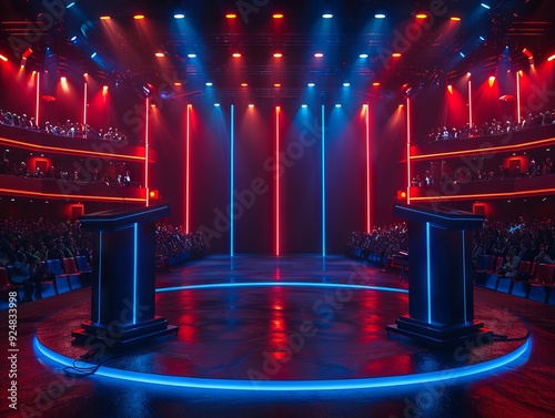 © Mehdi, Obraz premium Political Debate Stage with Dramatic Lighting