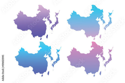 © K, Naklejka premium Political map of East Asia with administrative divisions.gradient color blank map. Vector illustration