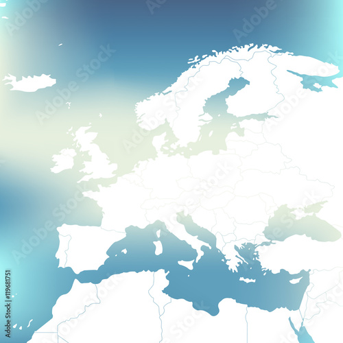 © BAIVECTOR, Obraz premium Political Map Of Europe. Abstract blurred background. Vector Illustration.