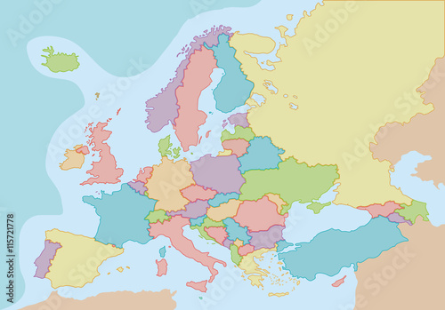 © asantosg, Obraz premium Political map of Europe with colors and borders for each country