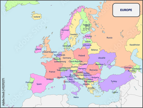© pablofdezr, Fototapeta premium Political Map of Europe with Names