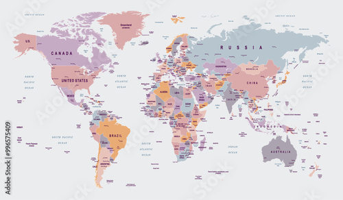 © Somar, Naklejka premium Political world map Gall stereographic projection