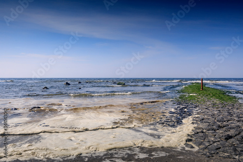 Obraz premium polluted algae foam washes up along the Dutch coast; The Hague, Netherlands