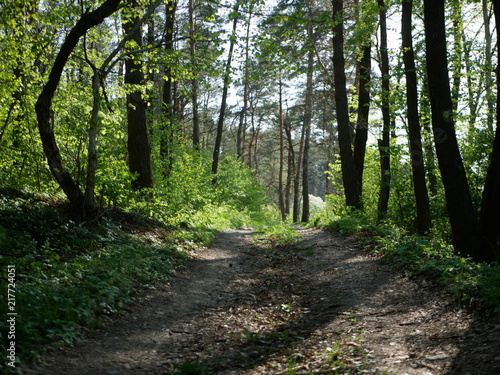 Obraz premium Polonne / Ukraine - April 28 2018: road in the forest
