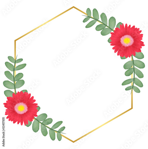 Obraz premium Polygon Gold Frame with Flower and Leaf