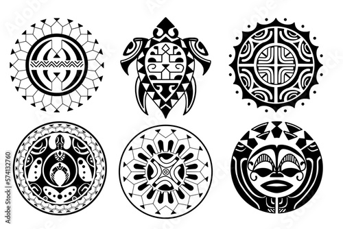 Obraz premium Polynesian circle tattoo design. Aboriginal samoan. Black and white texture,...