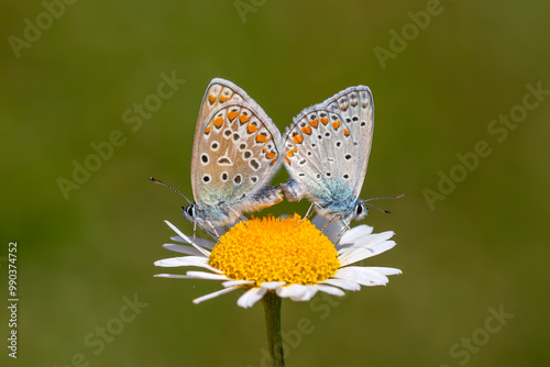 © kenan, Obraz premium Polyommatus icarus, tiny double butterfly on daisy