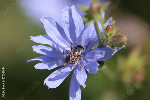 Fototapeta premium Polyster bee on Chicory Flower