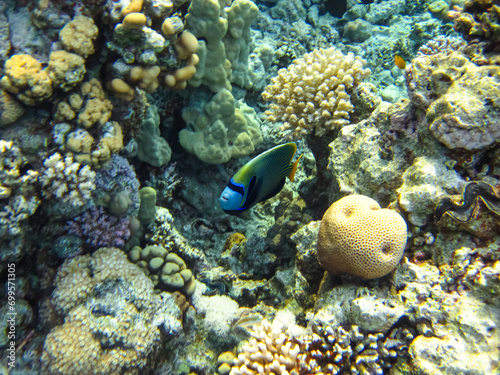 © glebantiy, Naklejka premium Pomacanthus imperator or Imperial angelfish in the expanse of the Red Sea coral reef