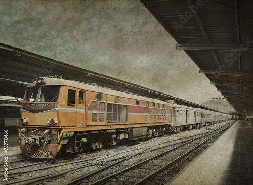 © grapestock, Fototapeta premium Pomarańczowy pociąg, czarno-białe tło