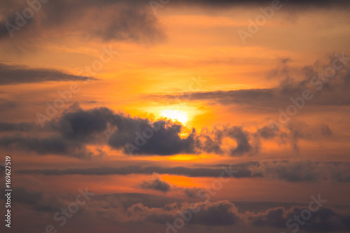 Fototapeta premium Pomarańczowy zachód słońca za chmurami
