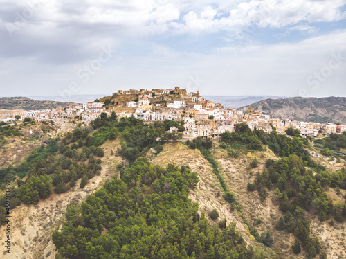 © photomaticstudio, Fototapeta premium Pomarico town, Basilicata, Italy. aerial view of the old town. vintage post production