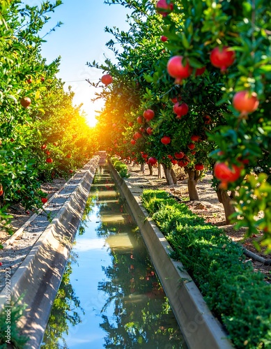 Naklejka premium Pomegranate orchard irrigation