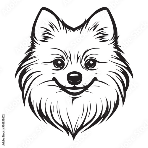 © Sadia, Obraz premium Pomeranian Face, Pomeranian dog breed Cute cartoon vector clipart Design, Silhouettes Dog Face, black and white Pomeranian vector