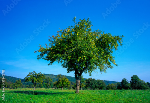 © michel, Obraz premium Pommier solitaire en été dans les champs dans les montagnes vosgiennes dans les vosges en France