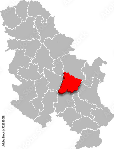 Fototapeta premium pomoravije district map ADMINISTRATIVE DIVISIONS of SERBIA 3d isometric map