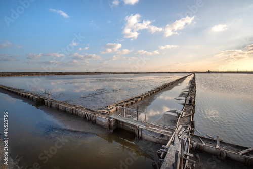 © mitzo_bs, Fototapeta premium Pomorie salt lake near the town of Pomorie, Burgas region, Bulgaria. Sea salt production