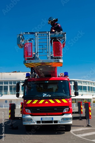 © Bernard GIRARDIN, Fototapeta premium Pompier et grande échelle.