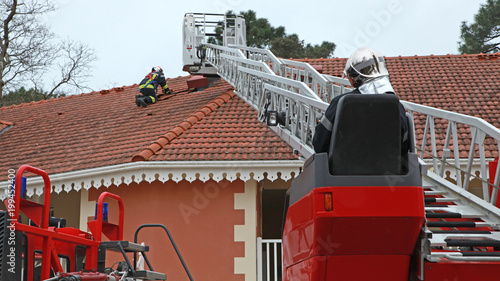 © hcast, Fototapeta premium Pompier sur une toiture