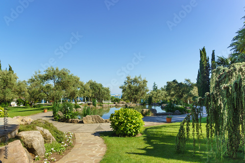 © garmashevanatali, Fototapeta premium Pond and walkway in the Park of Paradise. Partenit, Crimea , Russia
