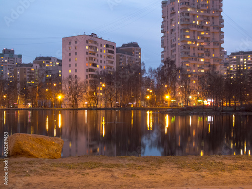 © Илья Смирнов, Fototapeta premium Pond in the park in the evening.