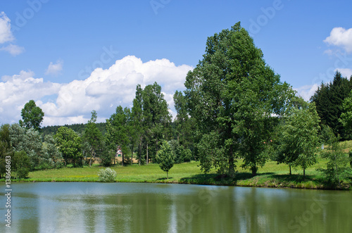 © CCat82, Fototapeta premium Pond surrounded by green meadows