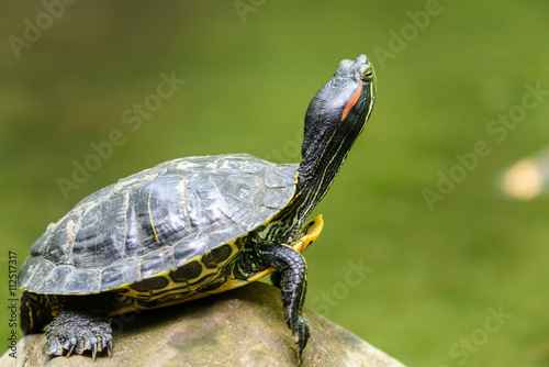 © radub85, Fototapeta premium Pond Turtle Heating In The Sun On Rock In Lake Water