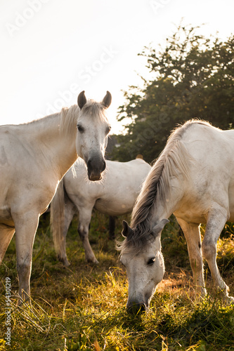 © Gabriel Cassan, Obraz premium ponies gazing at sunset