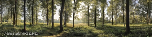 Obraz premium Ponorama - Morning Myst in the woods with sunshine
