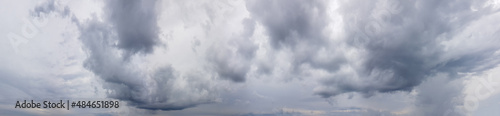 Obraz premium Ponoramic cloudy sky background. Gray clouds on sky