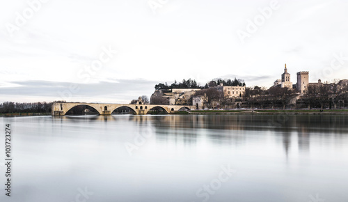 Fototapeta premium Pont d'avignon et palais des papes vues depuis le rhône