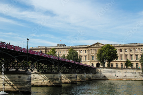 Fototapeta premium Pont des Arts across the Seine river, Louvre musum in Paris
