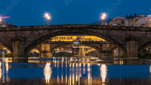 Naklejka premium Ponte Alla Carraia and Santa Trinita Holy Trinity Bridge day to night timelapse over River Arno in Florence