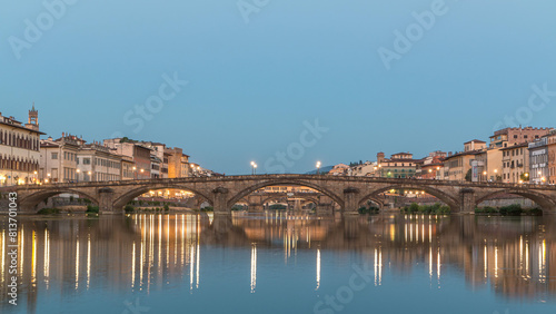 Fototapeta premium Ponte Alla Carraia and Santa Trinita Holy Trinity Bridge day to night timelapse over River Arno in Florence