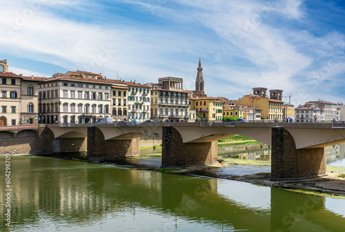 Fototapeta premium Ponte alle Grazie medieval bridge on Arno river in Florence. Tuscany, Italy