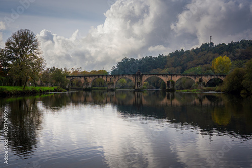 © p_rocha, Obraz premium Ponte da Barca bridge over Lima river. Ancient portuguese village.