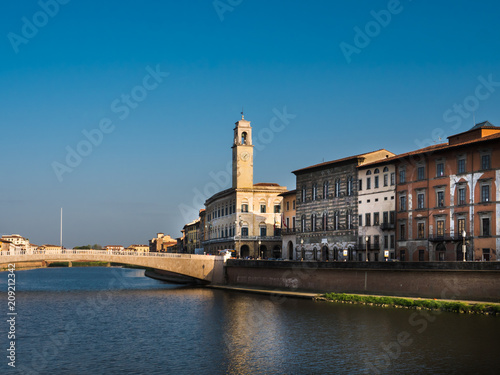 Fototapeta premium Ponte di mezzo and heritage buildings in Pisa