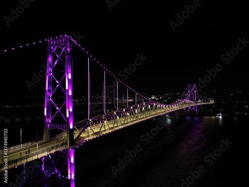 © Atilio, Naklejka premium Ponte Hercílio Luz Florianópolis Noite - Roxa/Lilas
