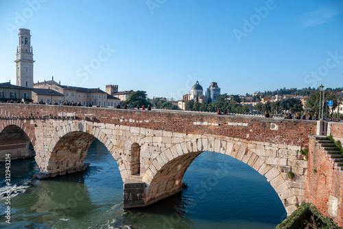 © giemmephoto, Naklejka premium Ponte Pietra w Weronie we Włoszech
